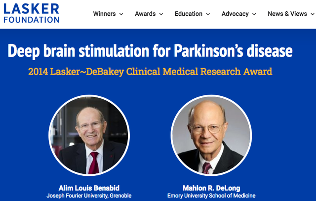 图11. Mahlon DeLong和Alim Louis Benabid共享2014年的拉斯克临床医学奖。