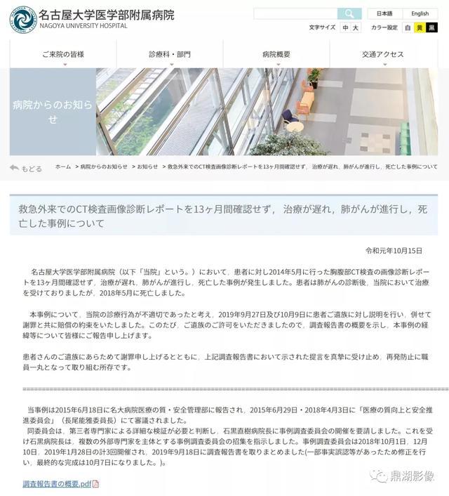 名古屋大学医学部附属医院向该患者的家属说明情况,进行公开道歉,并承诺予以赔偿。