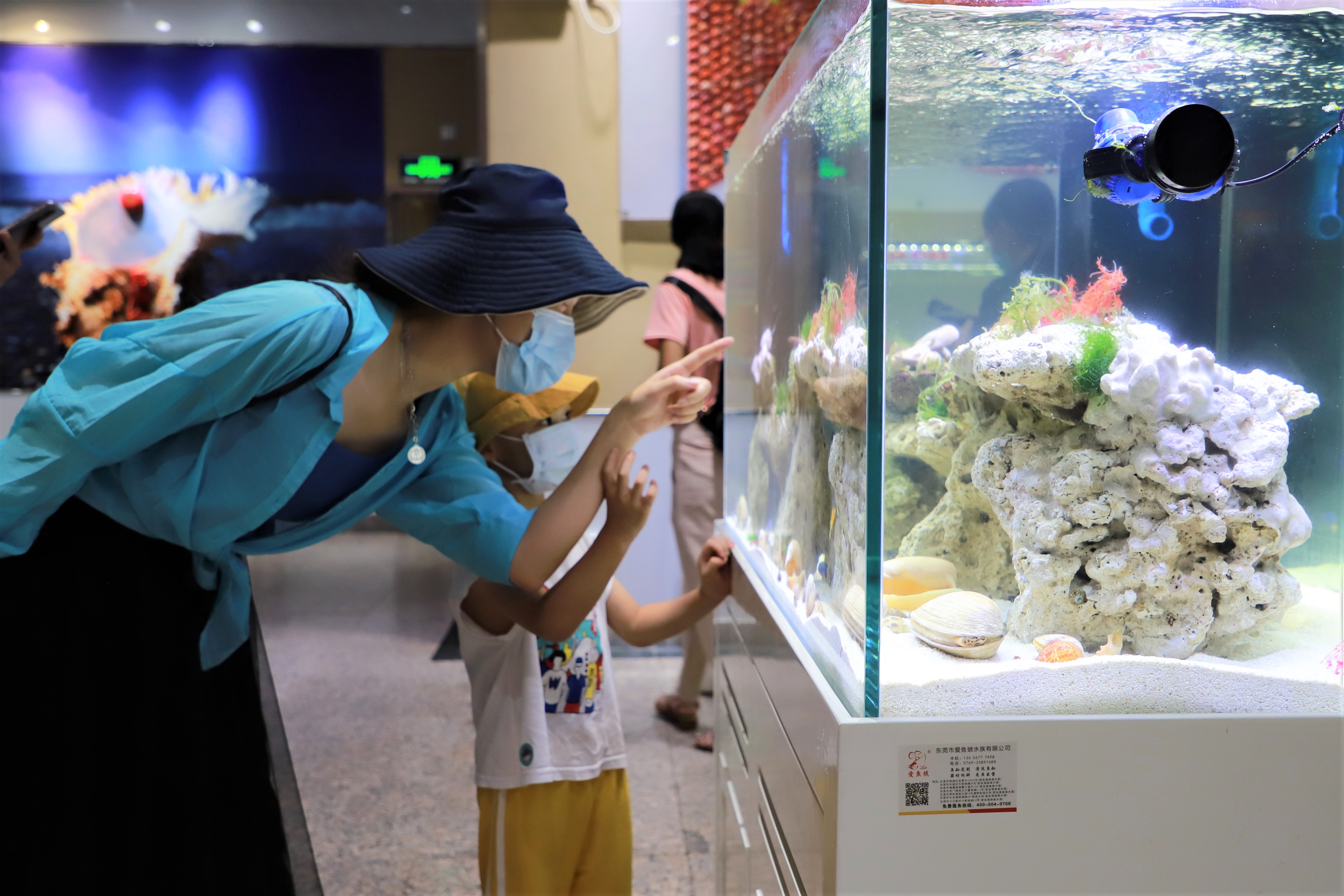 展览包括20余贝类、螺类、海胆、珊瑚等生物活体,模拟海洋贝类真实的生存环境,可以观察海螺的生活习性,进食及移动情况等。