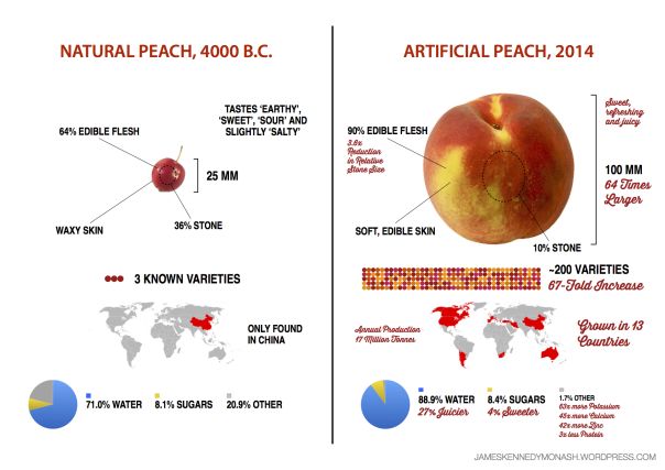 最早的野生桃子仅有樱桃大小、肉少核大,味道有点儿像扁豆,一点儿也没有现在桃子的甜美多汁。
