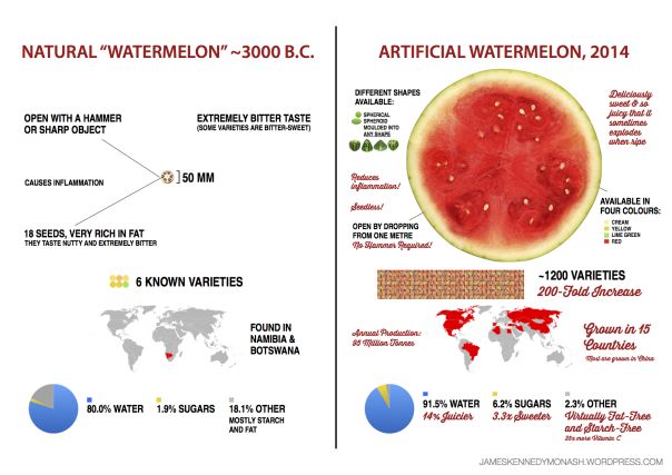 那时自然界中生长的野生西瓜个头不仅个小、质地硬、口感不好,而且瓜瓤还是白!色!的!