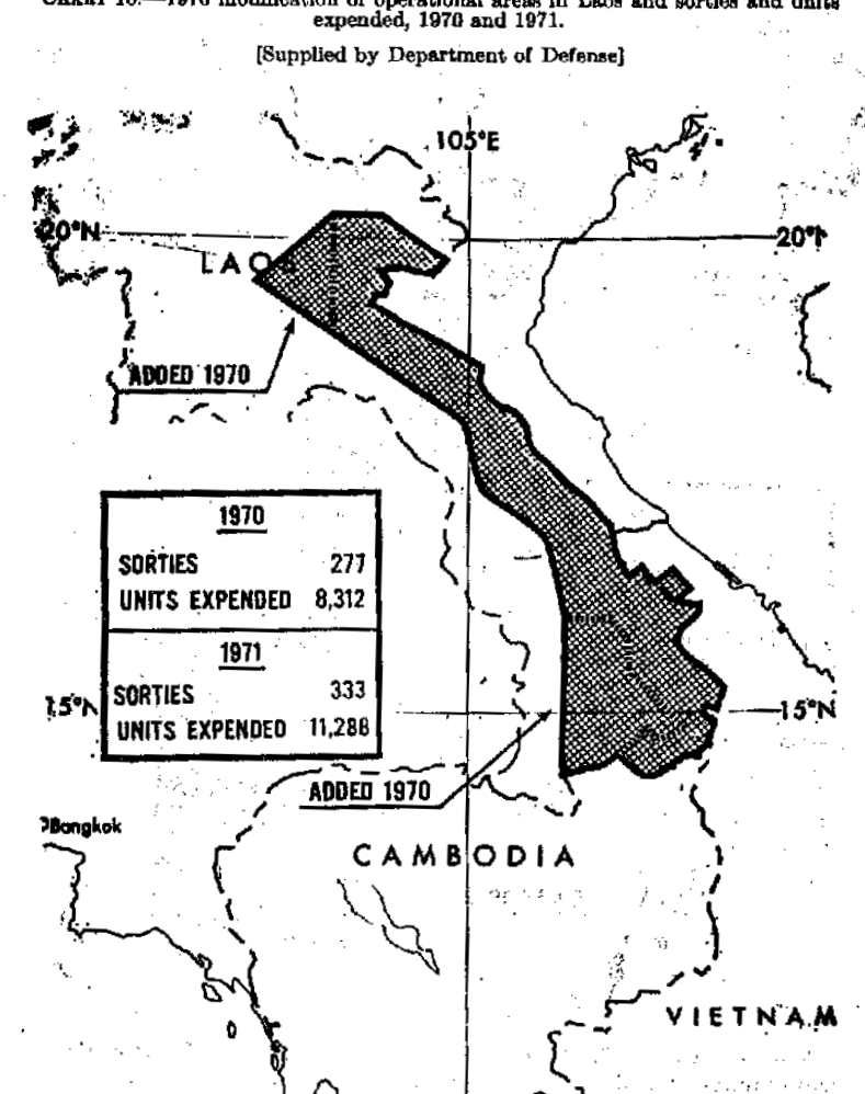会议的解密材料显示,该项目从1967年3月20日开始至1972年7月5月结束,每年3月-11月执行;实施区域在6年间有细微变动,但都在胡志明小道附近(如图3)。平均每年的费用高达360万美元,现价约2500万美元(以1970年对应的膨胀率来算),折合人民币约每年1.6亿元,这在当时是一笔不小的开支。