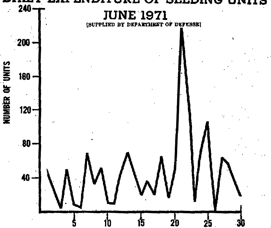那这个长达六年的计划难道没有一点效果吗?这份报告里,美国军方用来论证项目有效最核心的论据是1971年6月的例子(当然,从统计上说,以个案作为论据存在严重人为挑选数据问题,个例不能代表全部,但我们姑且不管)。1971年6月20日开始,美军加大了人工降雨工作强度(图6),在随后几天观测到越军行军单位大幅减少。