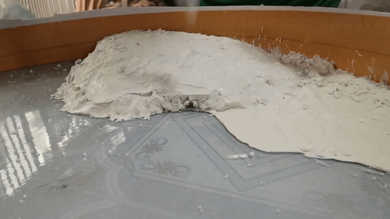 整体桌面拆卸下来后,还要进行打磨和抛光,此时整个表层一片模糊,像是冬雪落在了被冰封的河面上一般: