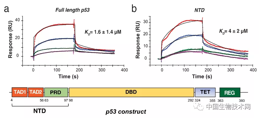 王春雨是利用核磁共振波谱研究阿尔茨海默症和癌症具体机制的专家,他将p53描述为人类癌症中最重要的蛋白质。p53有几个众所周知的抗癌功能,包括阻止细胞生长以允许DNA修复、激活DNA修复,以及在DNA损伤无法修复时启动称为凋亡的程序性细胞死亡。p53的一端被称为N末端结构域(NTD)。NTD是一种无序蛋白质,与许多蛋白质相互作用,作为细胞信号传导的枢纽。因此,它可能发挥多种功能。已有研究发现,EGCG和p53之间的相互作用防止了蛋白质的降解。在通常情况下,当p53在体内产生后,在NTD与一种称为MDM2的蛋白质结合时,会介导p53的泛素化和降解。MDM2已被发现在多种肿瘤中突变与扩增,其扩增与肿瘤转移密切相关。MDM2独立于泛素化,而且它通过阻止一般转录因子与NTD结合来抑制转录。EGCG对人癌细胞的凋亡作用与其干扰MDM2介导的p53泛素化有关。在最近一项研究中,从2295种植物化学物质库中鉴定出EGCG是p53-MDM2相互作用的抑制剂。在这项新研究中,研究人员通过使用表面等离子共振(SPR)和STD-NMR测定,确定了p53的NTD为主要的EGCG结合位点,与MDM2结合位点重合。EGCG通过与NTD的结合,破坏了p53-MDM2的相互作用,并抑制了由MDM2介导的p53的泛素化,MDM2是p53的主要降解途径。这些结果为EGCG诱导癌细胞凋亡的机制以及EGCG在癌症预防和潜在疗效方面提供了更多细节。