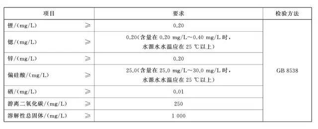 而且,即便是含有一点微量元素的矿泉水,其中的含量也很有限。按照国标《GB 8537-2018 饮用天然矿泉水》的标准,矿泉水中的矿物质成分需满足以下条件: