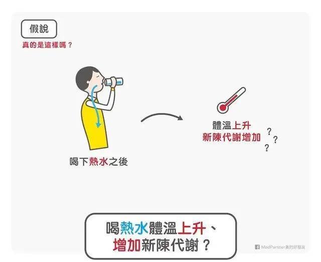 而实际上,喝热水并不能提高代谢。如果是体温升高了,确实会提高代谢,比如生病发烧时代谢就会提高。可是喝热水对健康人的体温几乎没影响,即便是喝再多的热水,体温仍然是恒温的,所以对基础代谢的影响也微乎其微。