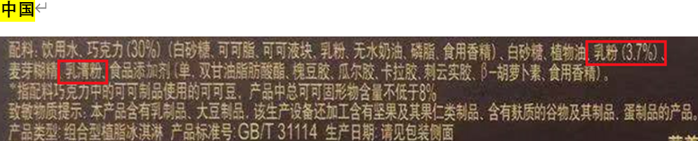 比如英国的同时用了复原脱脂奶、全脂奶粉、乳清固体;加拿大的同时用了浓缩脱脂奶、乳清粉、全脂奶粉、浓缩乳清蛋白;而中国只用了奶粉和乳清粉。
