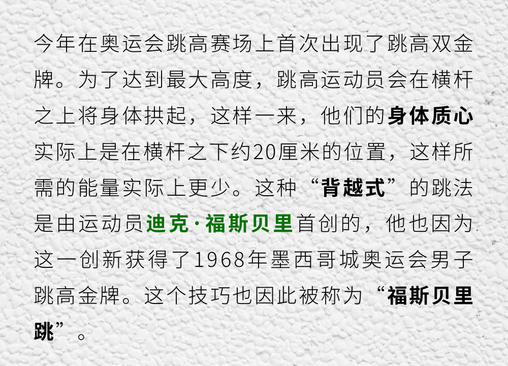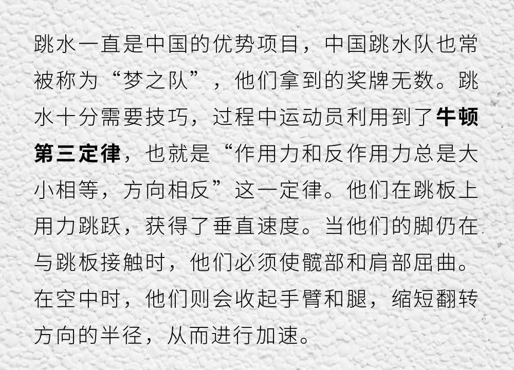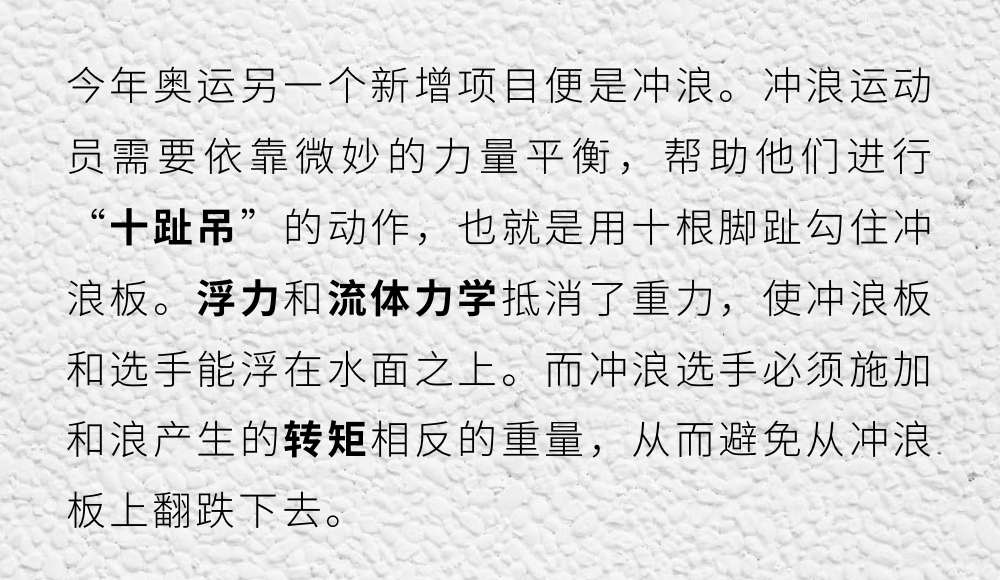 同样不变的还有运动背后的物理定律。无论是力、动量、重力,还是转矩、流体力学、空气动力学……同样的物理适用于所有人和所有项目。这些顶尖运动员正是在物理世界的规则之下,一次次向人体极限发起挑战。