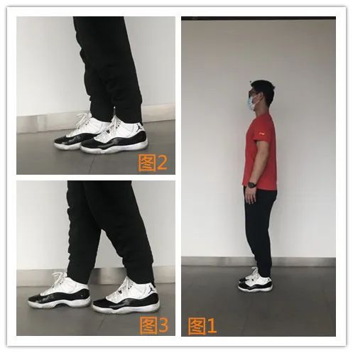 双脚并拢站立(图1); 半足距站立,前脚脚后跟内侧紧贴后脚拇趾站立(图2); 全足距站立,双脚一前一后直线排列,前脚脚跟与后脚脚尖相接站立(图3)。