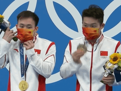 谢思埸和王宗源在男子双人3米板项目为中国队时隔9年重夺金牌。这么宝贵的金牌,根本来不及仔细欣赏,先把口罩戴上再说。