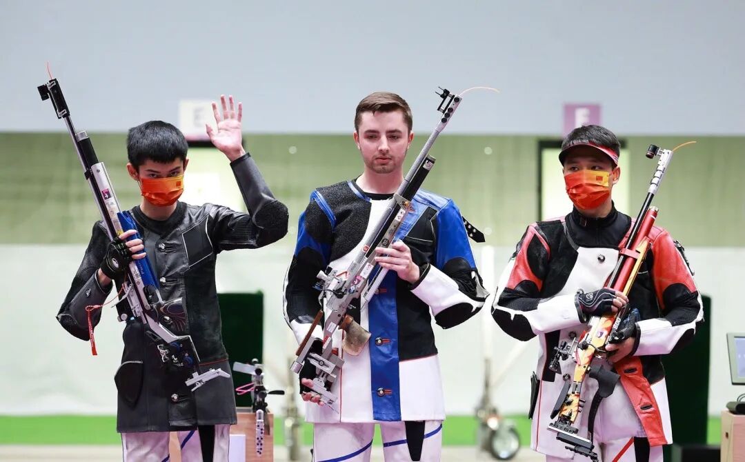 男子10米气步枪比赛,00后小将盛李豪和队友杨皓然: