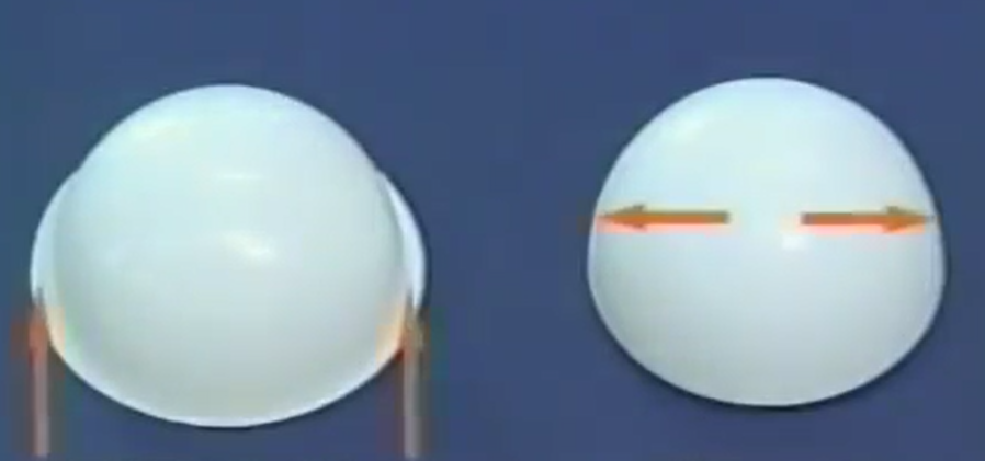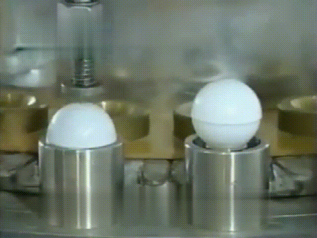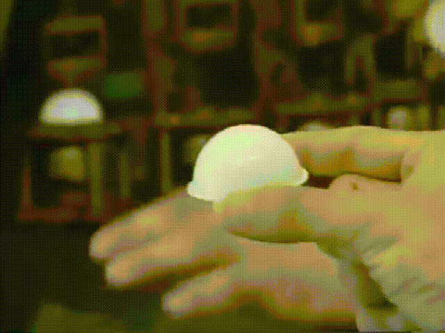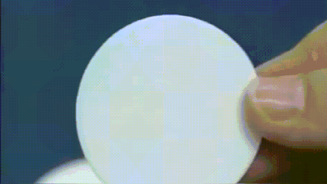 通过机器在半球上用力挤压,就会将两个半球完全粘合在一起,形成一个圆形的乒乓球。