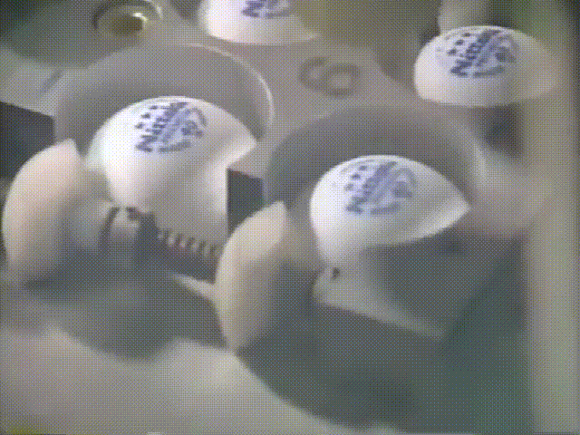 通过光照检测接缝是否完好,是否均匀,还要对乒乓球进行称重和旋转测试,并进行分级,高质量的用于比赛,而低质量的则用于训练。