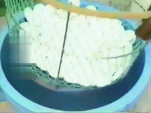 片材制成半球型后,要用水让其快速冷却,从模具上取出后,乒乓球的一个半球就做好了。