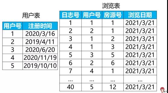 某房源平台有两张表来记录用户信息、和用户查看房源信息。