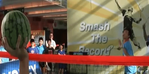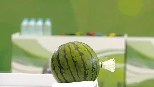 羽毛球名将李宗伟扣杀速度经常超过300km/h,他就表演过用羽毛球开西瓜。被这种羽毛球打了肯定很不好受。