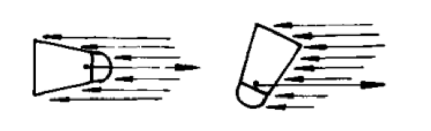 我们平时在看球和打球时会观察到,羽毛球在离开对手的球拍后在空气中飞行时,总是球托冲前向我们飞来,而不是喇叭口,这又如何解释呢?