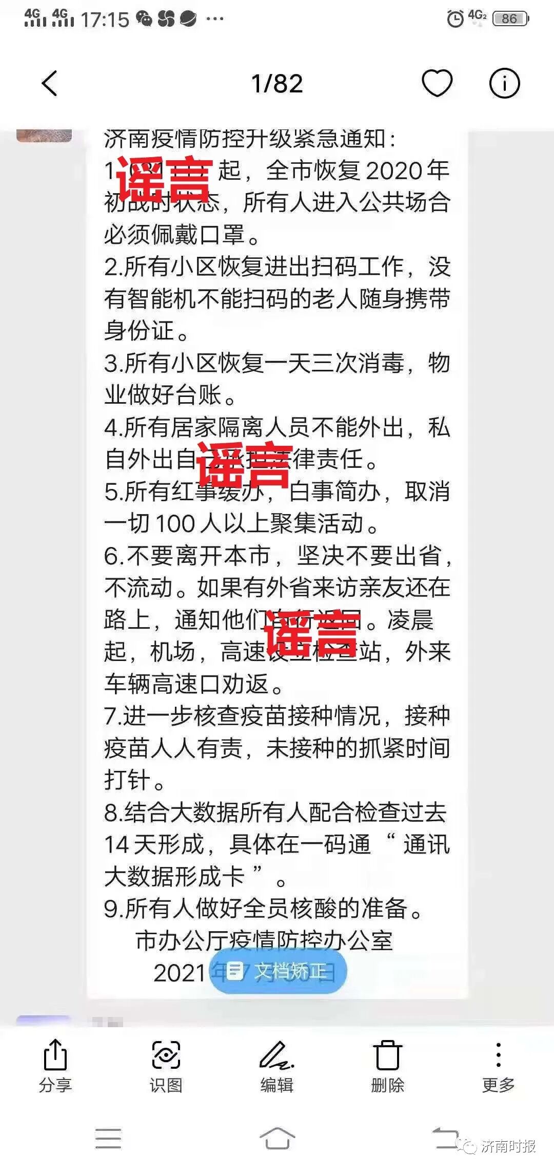 真相:经核实,除了青岛,省内济南、济宁等地也出现了类似谣言,已被证实为谣言。