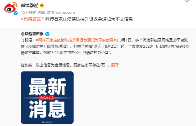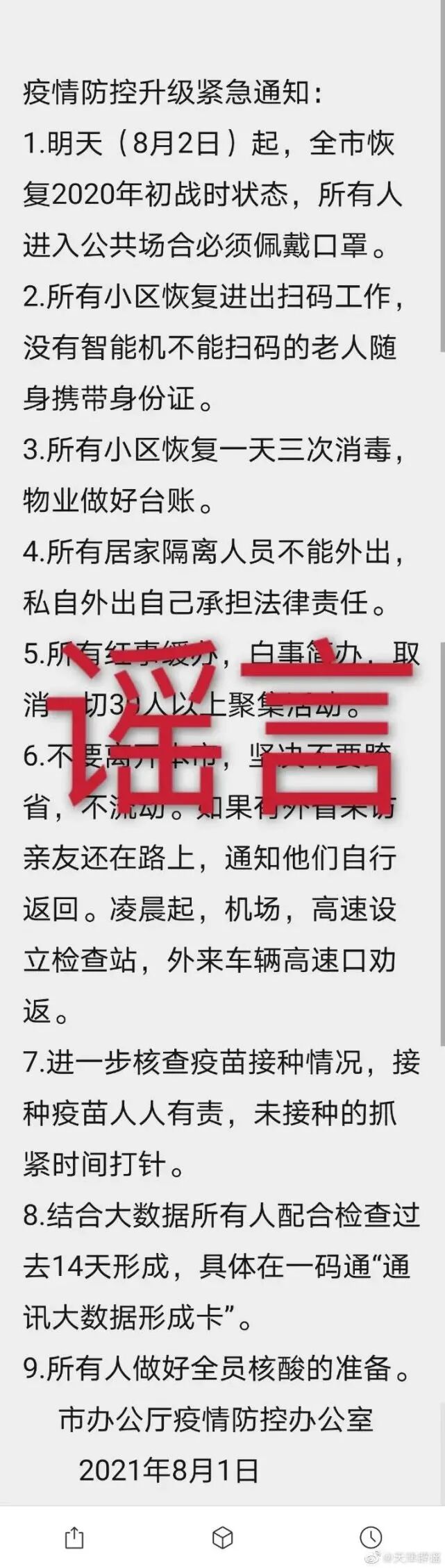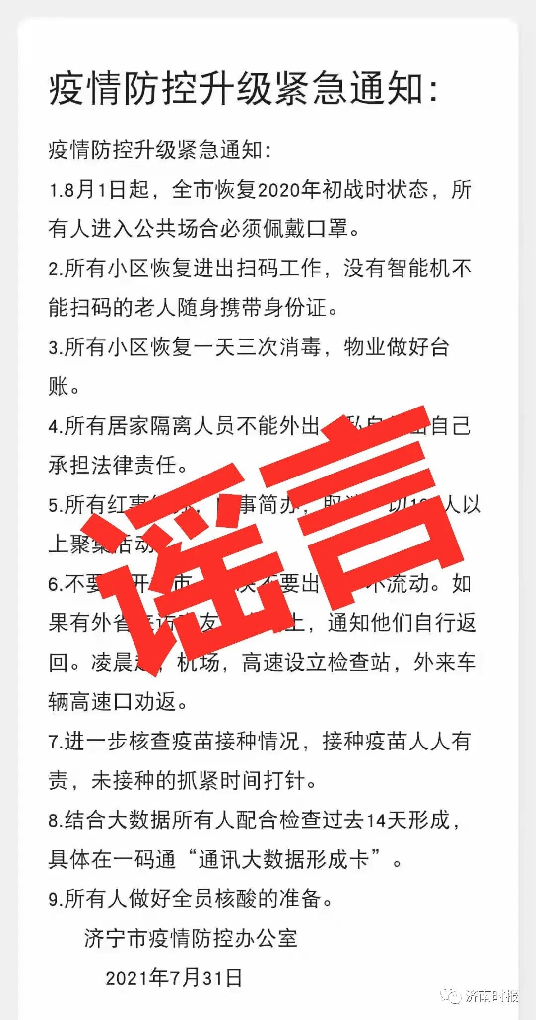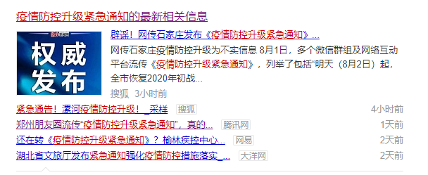 除了山东,最近全国多地也出现了疫情防控升级紧急通知的消息,均已证实为谣言。