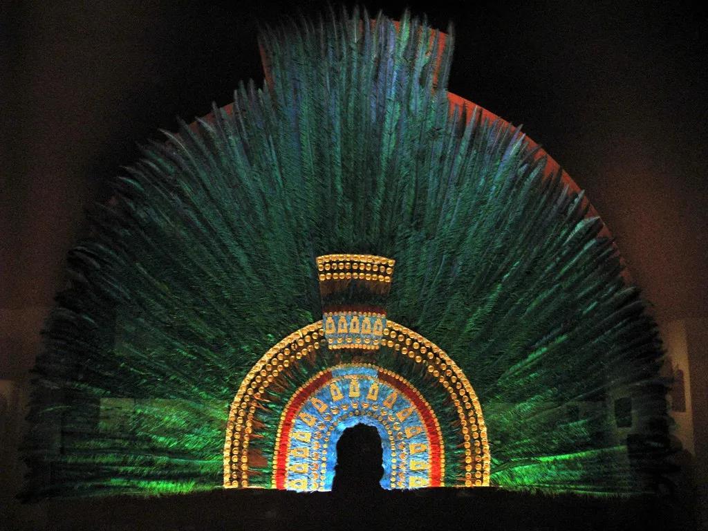 当然,对羽毛的需求,光靠人工饲养不能满足。在阿兹特克帝国和印加帝国,羽毛是赋税中的重要项目,统治阶级甚至会派遣商人和猎人去国外搜寻珍禽的羽毛。羽毛被编织成斗篷、头冠,制成扇子等工艺品,或作为贵族的服饰,或充当宗教仪式上的礼器,或用来装饰勇士的军装和盾牌。为了拉拢西班牙人,国王蒙特祖玛二世把大量羽毛服饰送给科尔特斯和他的手下,让他们穿戴得如同绚丽的热带鸟类。