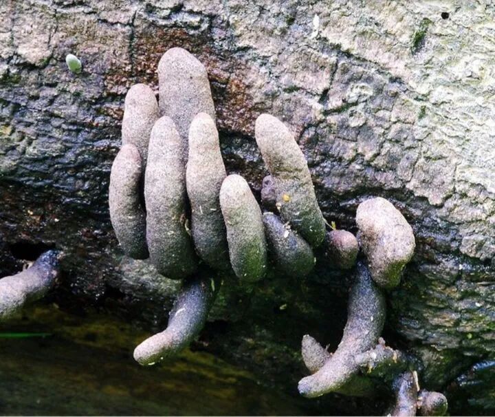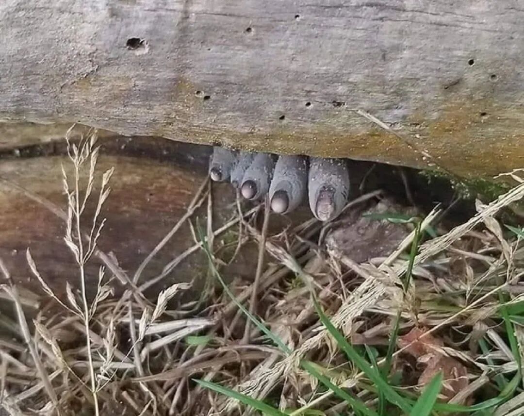 想得没错,这确实是死人的手指,但不是真正的人类手指,而是一种蘑菇,形状像人的手指,长度也和人的手指差不多,很多时候从地面伸出来的,也恰好是五根,所以它的名字就被称作“死人的手指”(dead man's fingers)了。