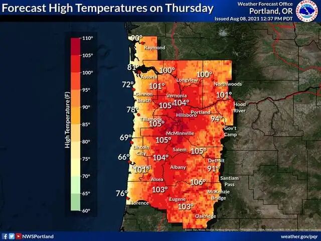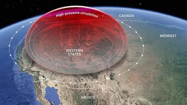 根据预报,美国西北部地区上空一大片高压正不断加强,即将形成另一个“热穹”,气温将再次飙升到38℃以上,比正常水平高出11℃到14℃,可能会再次打破100多个气温纪录。