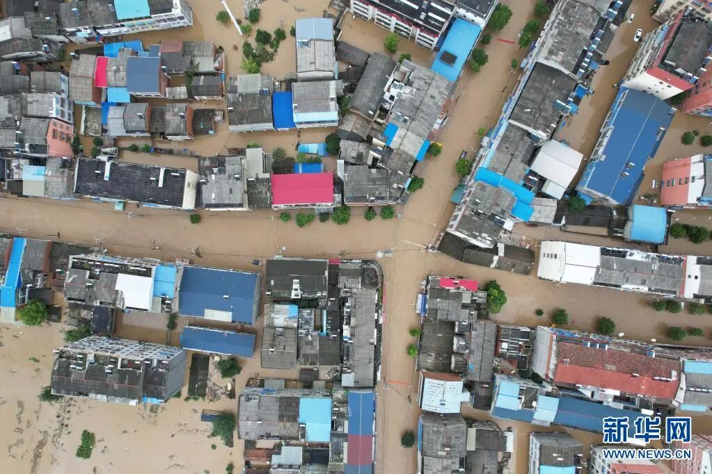 12日拍摄的随州市柳林镇受灾现场(无人机照片)。新华社发
