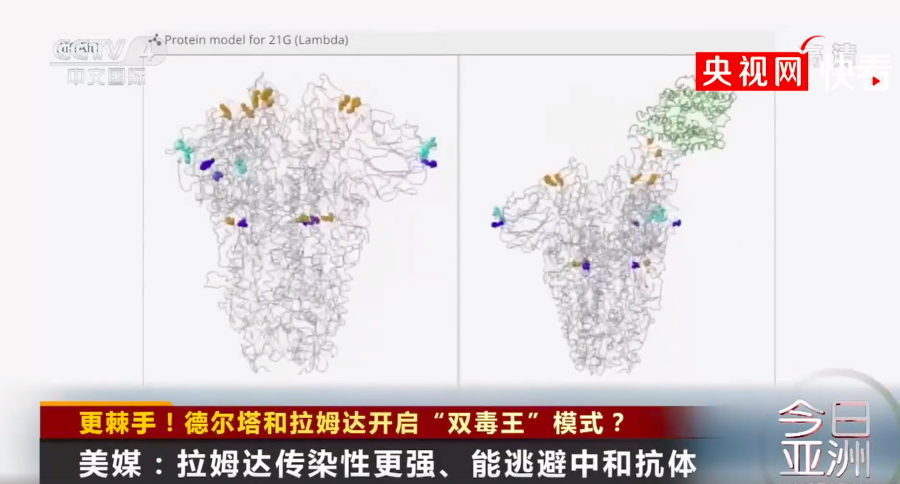 ●据美媒报道,研究报告表明,“拉姆达”的刺突蛋白存在数种基因突变,使它的传染性达到了原始毒株的两倍。日本东京大学研究人员还发现,“拉姆达”对疫苗的抵抗力也超越其他变异毒株。(来源:央视网快看)