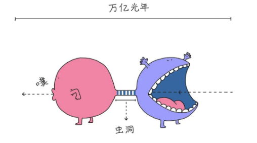 根据相对论,理论上宇宙空间还有一种白洞。和黑洞相反,白洞源源不断向外喷射物质。有科学家猜测,黑洞和白洞之间可能有个孔道链接,那就叫虫洞。如果能从一边的黑洞进去,从另一边的白洞出来,就能实现宇宙中瞬间移动,跨越万亿光年!