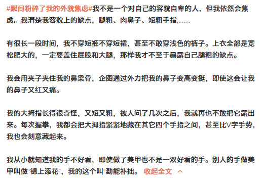 更有甚者,会不断地把自己和影视剧、杂志中的艺人明星进行比较。