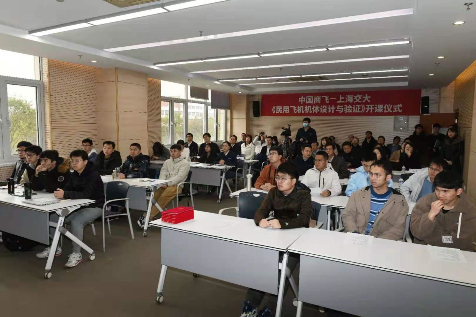 中国商飞--上海交大《民用飞机机体设计与验证》开课仪式在上海交大航空航天学院A229顺利举行。上海飞机设计研究院党委副书记刘树新、上飞院飞机结构强度工程技术所副所长陈保兴、上飞院飞机结构强度工程技术所党总支记姚雪波、上海交大研究生院培养办主任孔令体、专业学位办公室主任张小丽、上海交大航空航天学院党委书记胡士强、副院长战兴群、党委副书记张昆鹏、葛阳等领导和中国商飞讲师团及上海交大航空航天学院结构强度方向教师、上课学生出席了此次开课仪式,共同见证了这一历史性时刻。仪式由航空航天学院副院长战兴群主持。