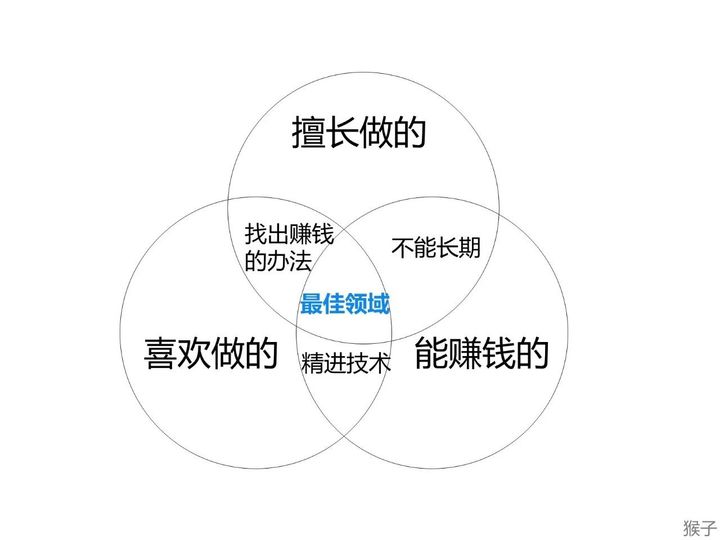 2)不能长期:如果你擅长做某件事情而且可以赚到钱,但是你不喜欢,那么这件事情不能长期。在解决生存的前提下,同时培养去做自己喜欢的事情。