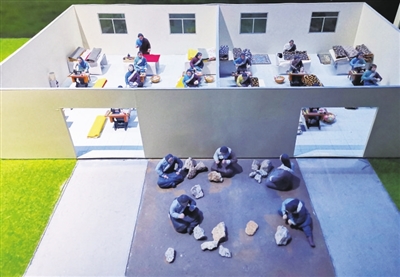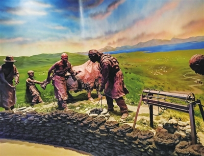 展馆模拟场景:建设三江源国家公园期间牧民整村搬迁,在新家园生活