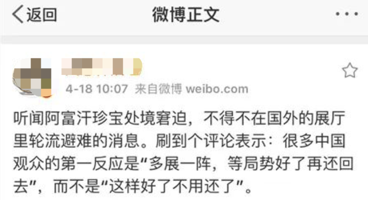 “帮帮这些阿富汗文物!”“多展一阵,等局势好了再还回去!”
