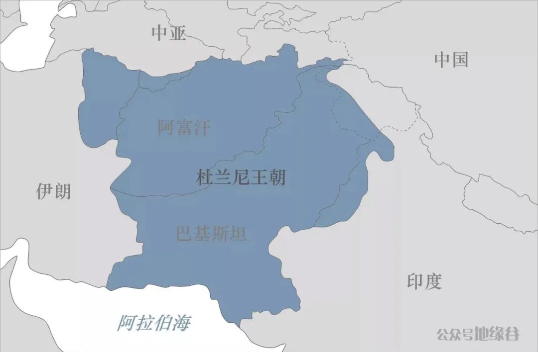 杜兰尼王朝版图与现代阿富汗对比。制图/地缘谷