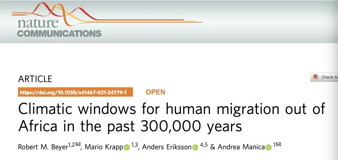 气候限制影响人类“走出非洲”研究报告。图源:《自然·通讯》在线版