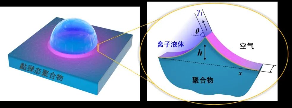 液滴表面张力诱导聚合物表面发生形变的示意图。受访者供图