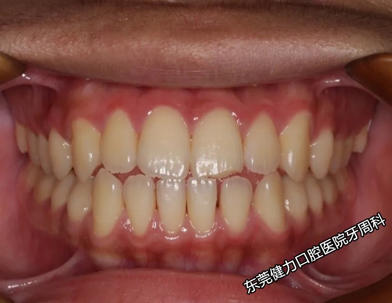 患者进行牙周治疗前、后的对比图,牙龈问题已恢复