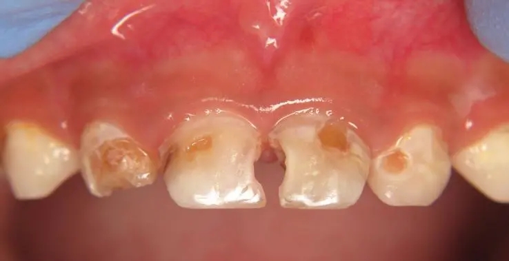 “奶瓶龋”患者,上颌乳切牙的真实照
