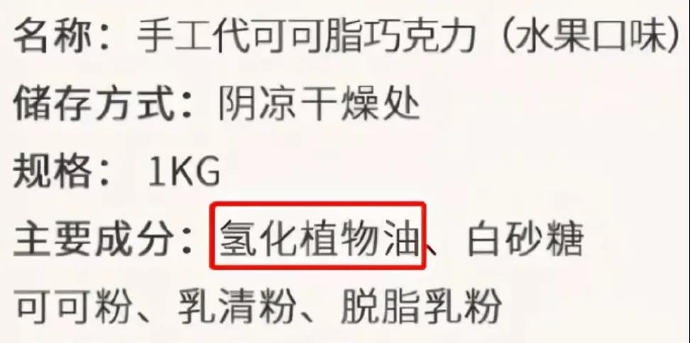不过这些年氢化油的工艺早已升级换代,“酯交换”等技术的应用使得氢化油几乎不含反式脂肪。另外,很多代可可脂其实是棕榈油等植物油脂分离提取的,并没有做氢化处理。