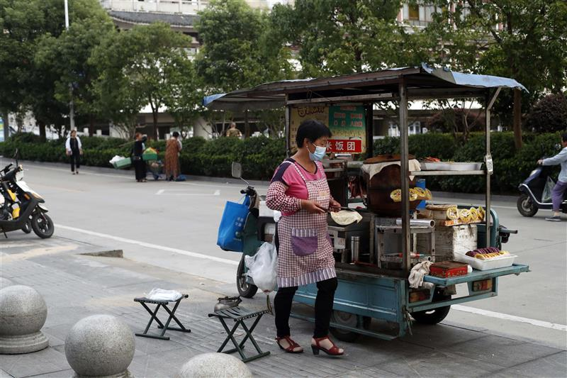 吴春香又开始卖早点养家 △吴春香每天卖早点养家