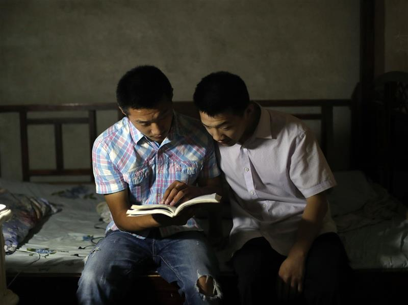 到家附近的一家工厂做起了兼职 △金华栋(左)与弟弟金华梁在看书交流