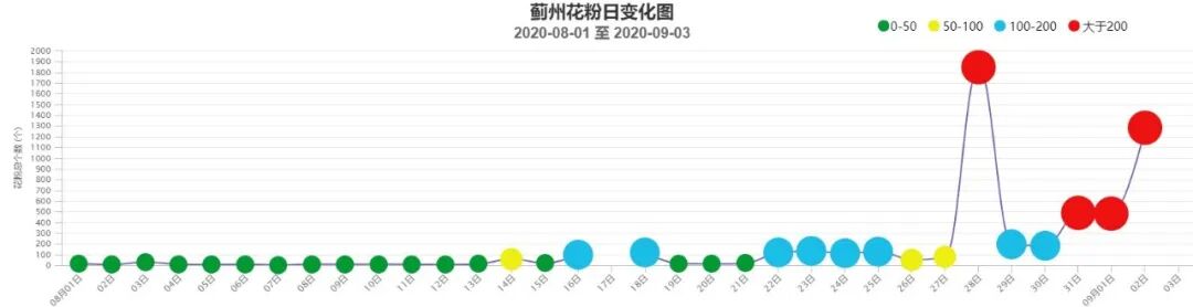 ↑ 2020年8月1日到9月3日蓟州花粉监测实况。