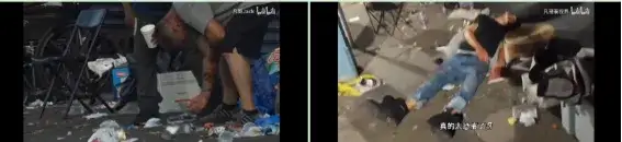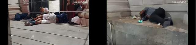 现在在互联网上人们可以看到,博主们一般开车用手机或者车的监控拍摄画面,在美国的费城、洛杉矶、纽约、加州等城市街头,到处都有成片的流浪汉睡在,或已经生活在大街上了马路边都有帐篷,有些是白人,还有些妇女,他们生活周围苍蝇飞舞、蟑螂爬行的垃圾堆旁边。这里面有的是破产者、有的吸毒之后昏睡的佝偻者、有的饿殍,而往往警察也持枪蹲点,路边停着各种各样的好车,人们快速匆忙走过,仿佛这一切司空见惯。这样一副末世景象却发生全世界最富有的国家,由于美国和中国基本上都处于统一纬度,现在天气有多热,大家可以感受下。