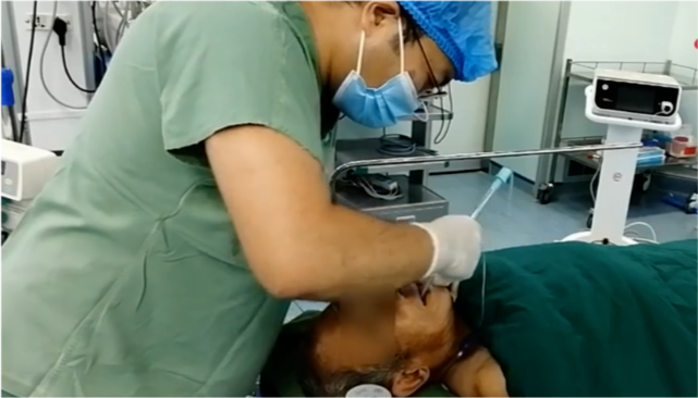 手指插进去之后,口腔就有了空间。趁这个机会,我迅速用吸引器清理了口腔。口腔干净了,我长舒了一口气:没有窒息的风险,抢救工作就有了保障。
