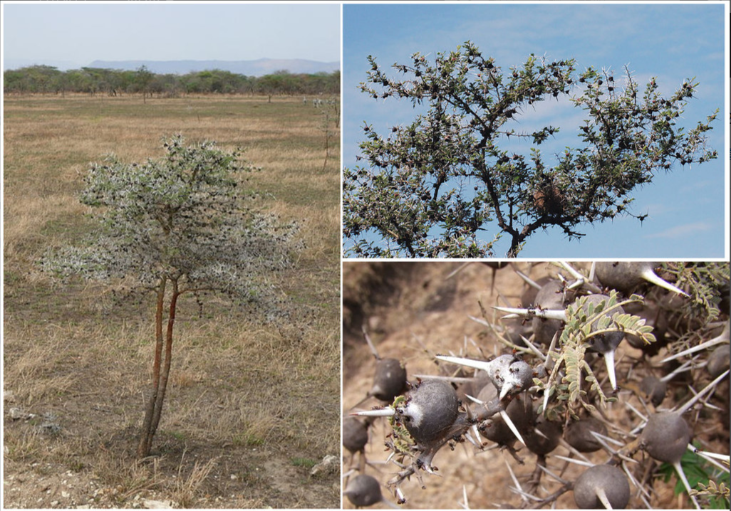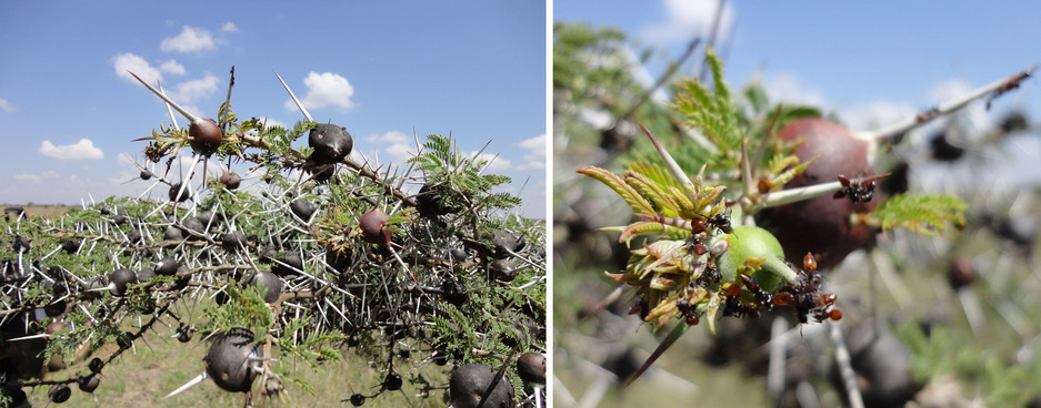 不过,有一种稀树草原的树木却很好地抵御住了这些草食动物的日常袭击,在它们的口齿之间留存了下来,它们就是非洲的镰荚金合欢(Vachellia drepanolobium)。
