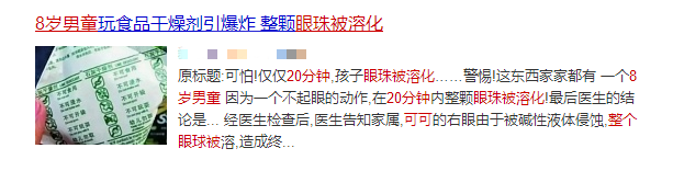 事情起源于,孩子图好玩就把零食里的小包放进了有水的饮料瓶里,没想到刚放进去竟然爆炸了,一瞬间孩子觉得有东西进了右眼,烧得特别疼,然后眼睛就看不见了。