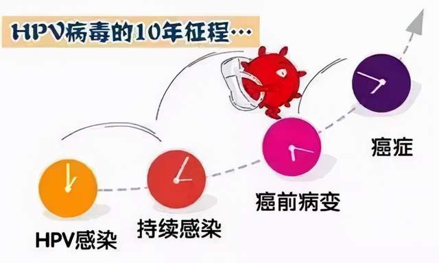 持续的HPV感染发展成宫颈癌前一般会经历这几个阶段: