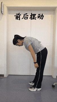 俯身弯腰,两臂自然下垂,轻轻晃动手臂使其摆动起来,前后方向,左右方向分别交错进行,在无痛范围内摆动,刚开始时小幅度(30度左右)摆动,而后逐渐加大角度至90度。
